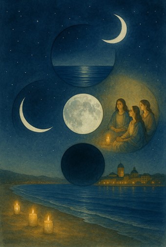 En Valencia, celebramos la luna llena con círculos de mujeres, masajes holísticos y rituales bajo la luz lunar. También integramos Flores de Bach como Agrimony y Cerato para apoyar la claridad emocional y la intuición.